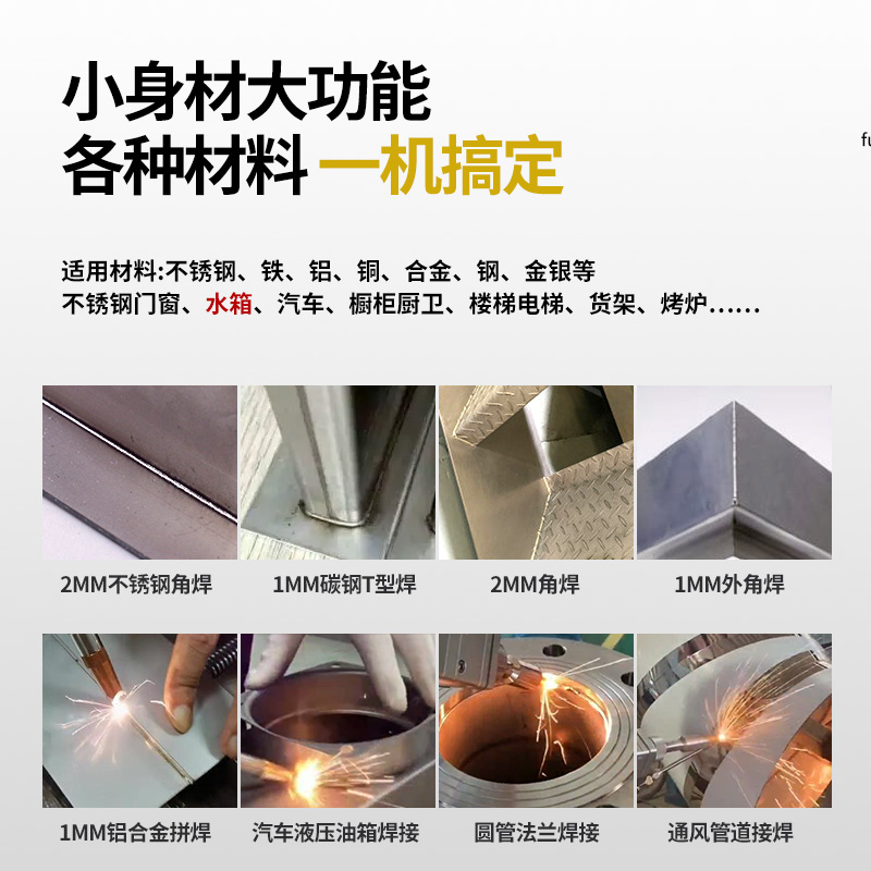 低效率和產(chǎn)品焊接效果不好是眾多廠家面臨的困擾,傳統(tǒng)的焊接設(shè)備價格低,但焊接效果不好,容易發(fā)黑,達(dá)不到驗(yàn)收標(biāo)準(zhǔn),既不環(huán)保,也無法對效率有更好的提升。手持式激光焊接機(jī)適用于不銹鋼、碳鋼、銅、鐵、鋁、金、銀、鉻、鈦鎂合金等多種金屬和合金,也可用于多種異種材料間的焊接,很多采用激光焊接的廠家都反饋,激光焊接設(shè)備確實(shí)帶來了效率和效果的雙提升。