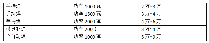 不同品牌和型號的設(shè)備價格也會有所不同,例如一臺功率為1000W的光纖激光焊接機(jī)價格在2萬到4萬左右,而功率更大的2000W-4000W以上設(shè)備價格就會超過6萬,詳情看下表《塘廈焊機(jī)價格表》: